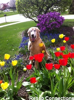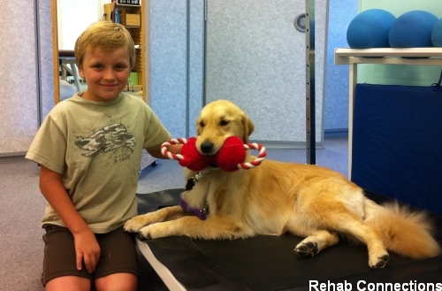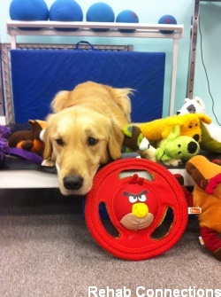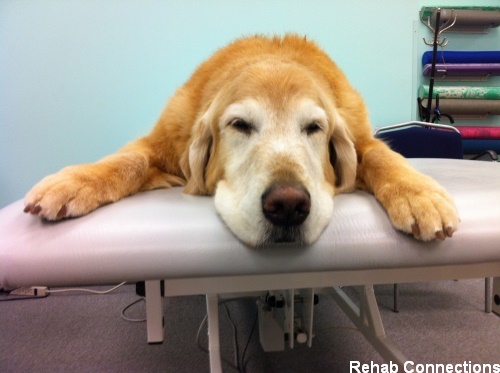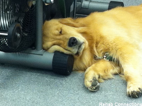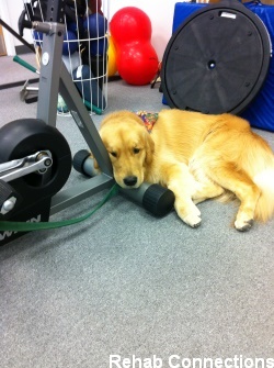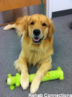 Smile, therapy is fun! Trek has been promoted to a window office now. He is an excellent greeter. |
