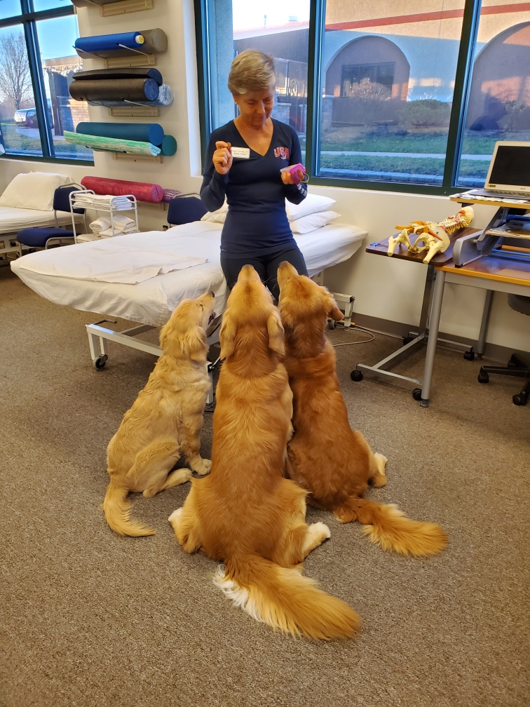 She is primary trainer and handler for Rehab Connections' Therapy Dogs Bolt, Ace, and Flash.